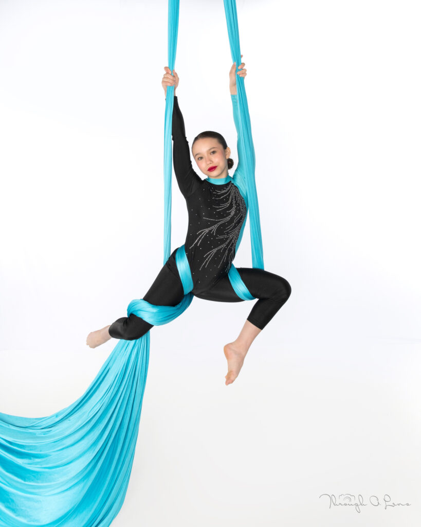Aerial Arts is for dance athletes who enjoy a challenge and who want to take their dancing in the air! Learn the skills, technique, and artistry to perform on the aerial silks apparatus.